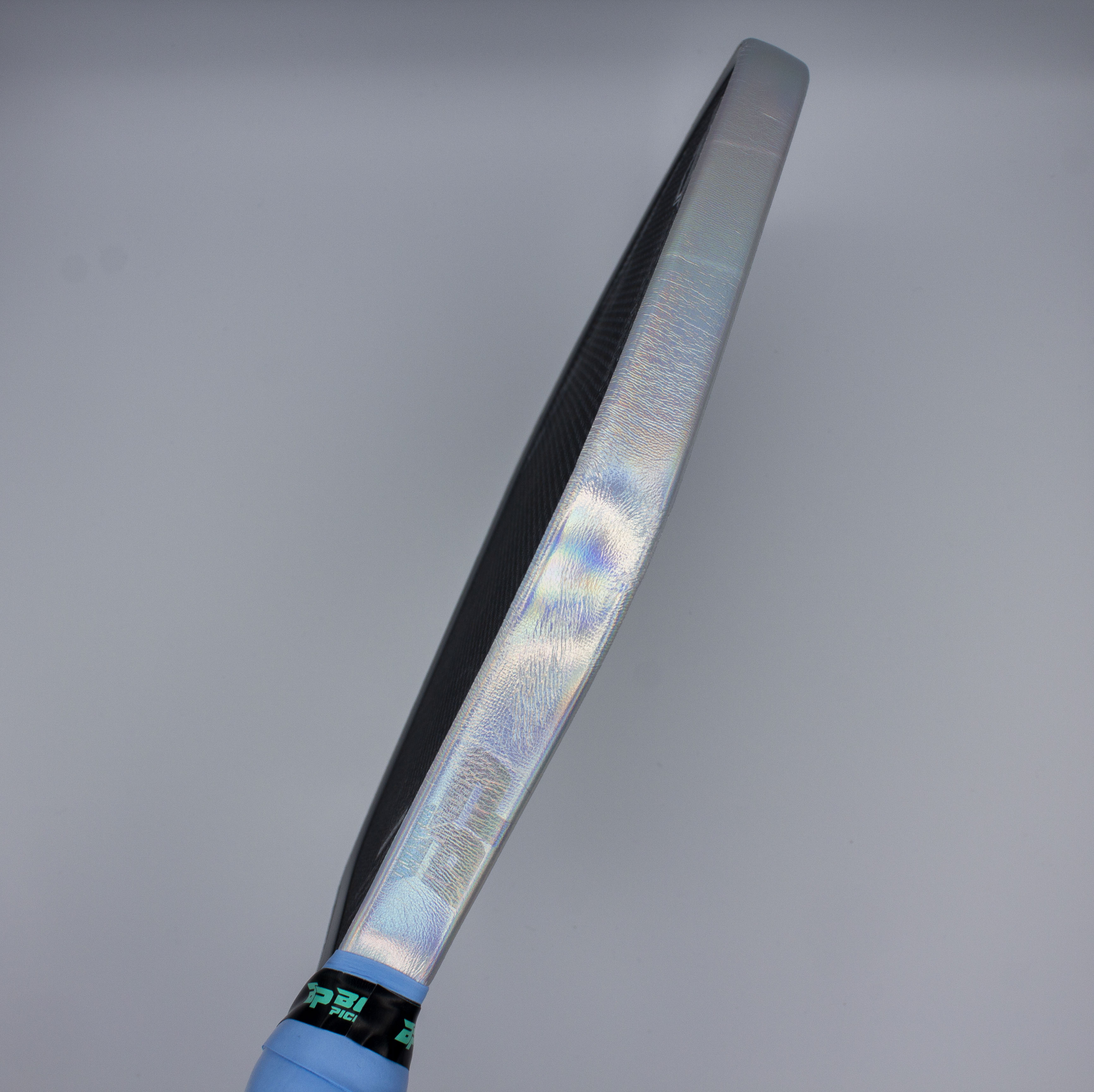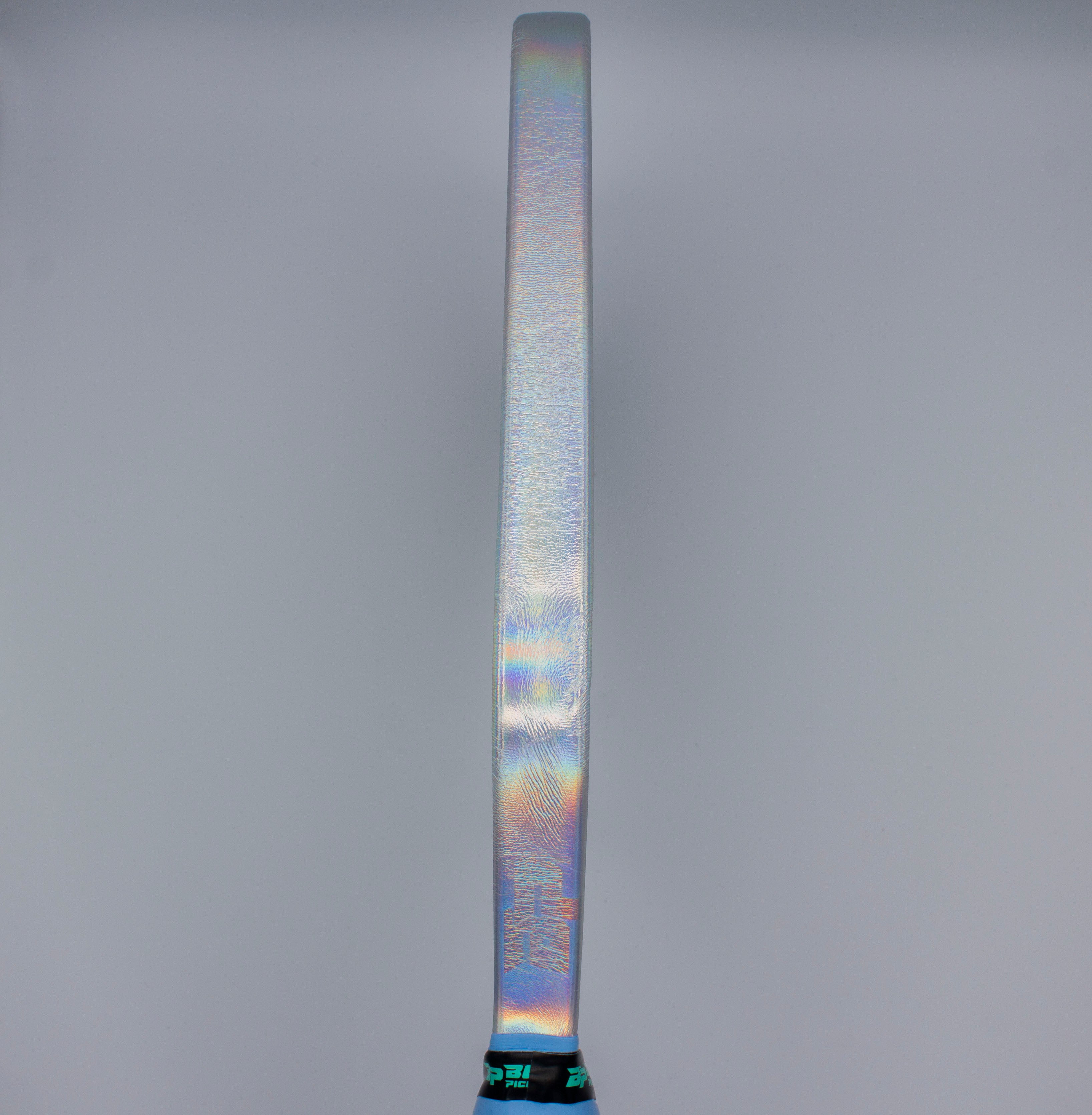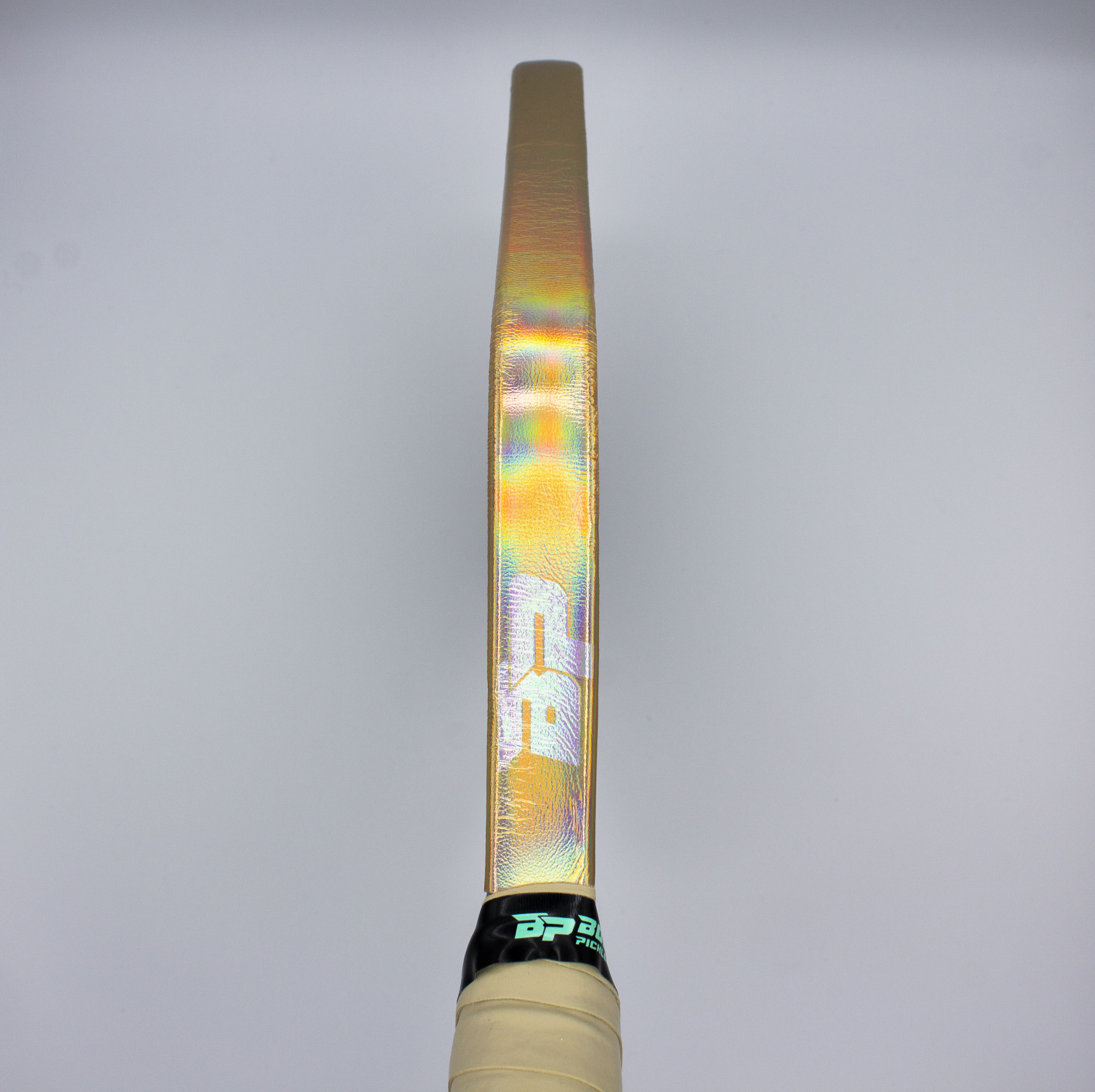 Hold your paddle upside down. Apply the adhesive side of the overgrip to the edge of your end cap, on top of your stock grip. Begin wrapping your handle. Overlap the overgrip to your preferred thickness. If you are a lefty, wrap to the left. If you are a righty, wrap to your right.