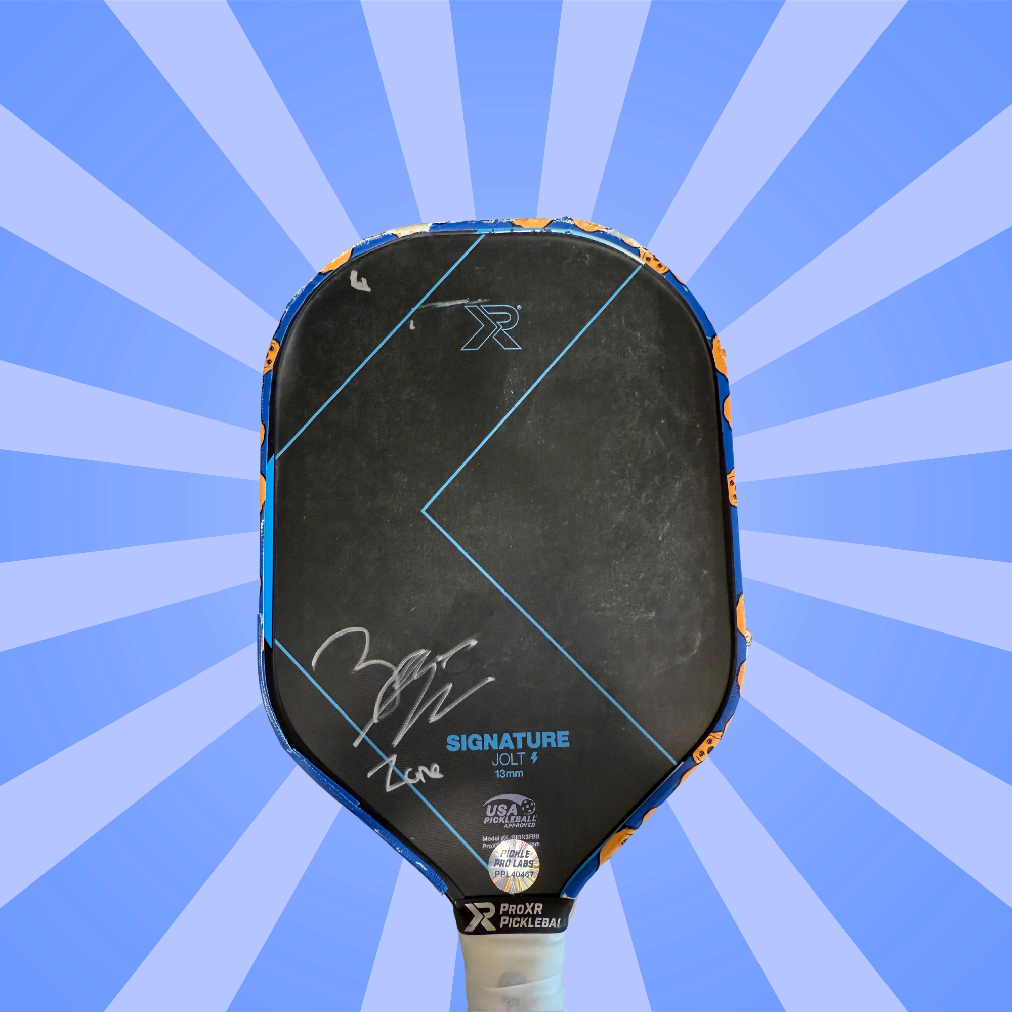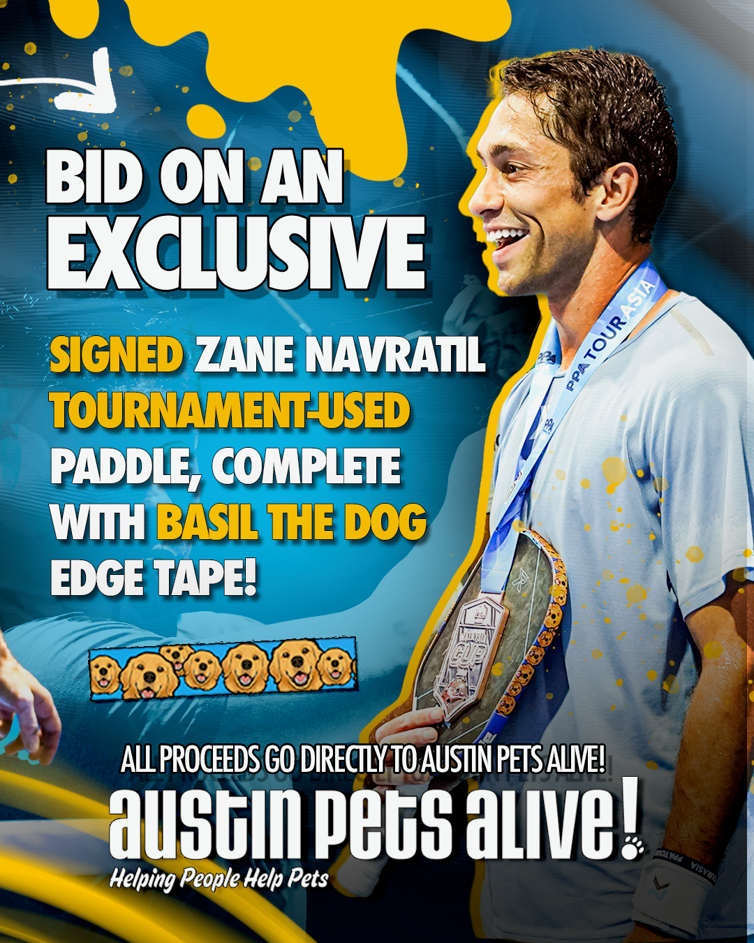 Signed, Tournament-Used, Zane Navratil Paddle with Basil the Dog Edge Tape. Zane and Bodhi have joined forces to provide one lucky bidder with a chance to own pickleball history! The highest bidder can own Zane's personal paddle that he used during PPA Asia tour. Zane won Bronze with this exact paddle at PPA Vietnam.